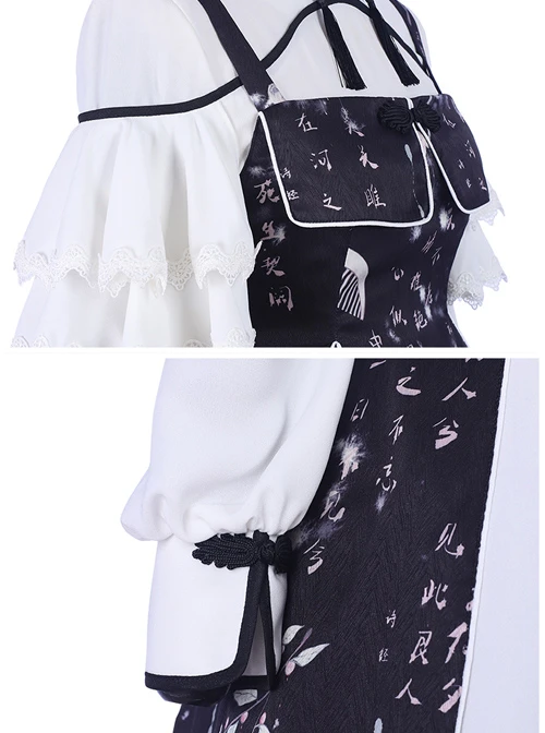 Include: Lining Long Sleeve Dress+ Sling Dress(Other Accessories Are Not Included)