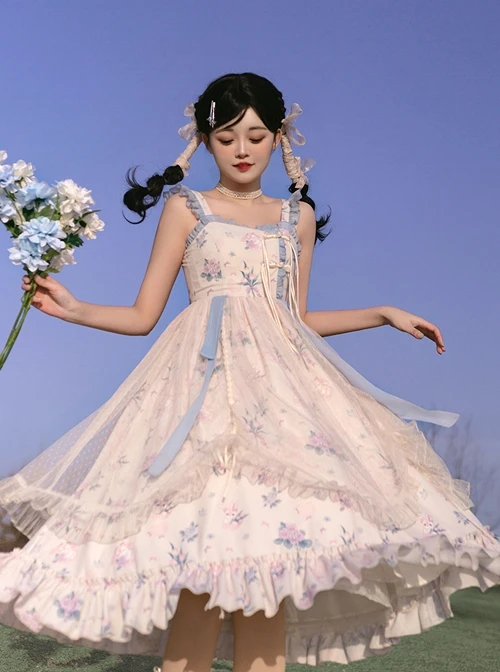 Retro and fresh floral sleeveless dress