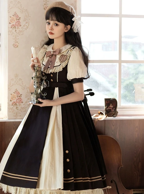 Sweet milk chocolate color, puff sleeve design, college style lace square round neck, lovely and cute.