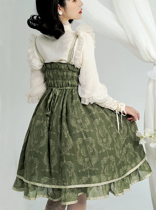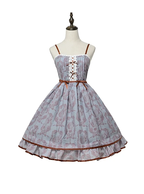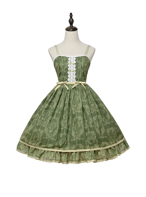 Perfect for everyday wear, this dress is the basis of classic elegance. The dress has cute little lace at the neckline, and the shoulder straps are thinner and can be adjusted in length. The dress is decorated with lace on the chest, with small values and ribbon bows in contrasting colors. The belt also uses the same style of ribbon bows, which is very elegant. The hem of the dress is made into beautiful flounces, which adds to the lovely feeling.