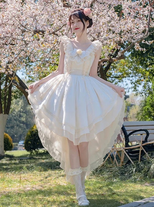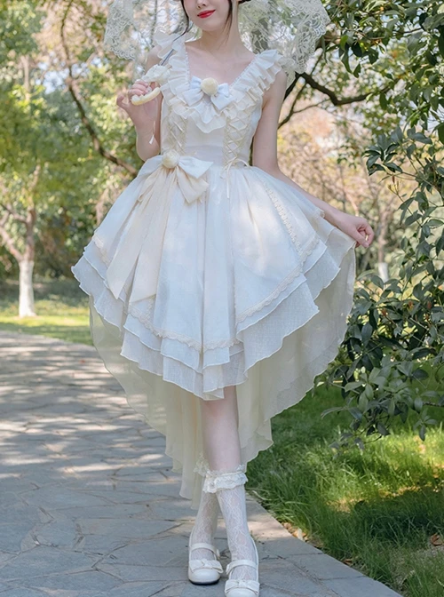 Lace V-neck design, with detachable bowknot, binding band design, irregular hem, slim fit, and daily elegance.