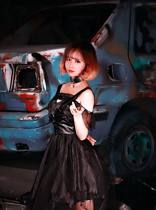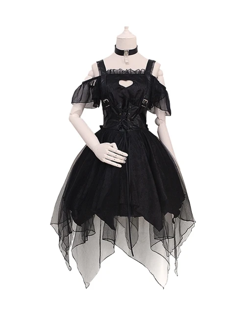 Heart cut-out design on the chest, lace-up slim fit, irregular hem design