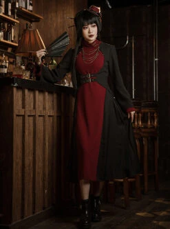Retro Temperament Daily Burgundy High-Neck Trumpet Long-Sleeved Gothic Sexy Cheongsam Long Dress