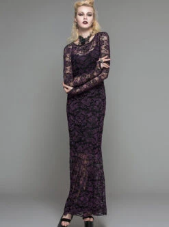 Retro Temperament Daily Burgundy High-Neck Trumpet Long-Sleeved Gothic Sexy Cheongsam Long Dress