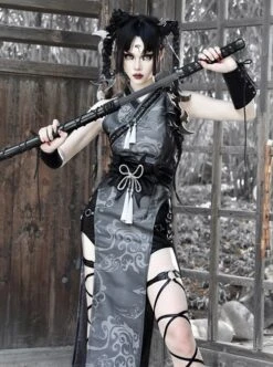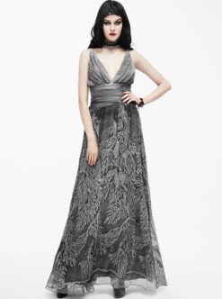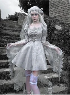 Rose Funeral Series White Gothic Dirty Dyed Heavy Workmanship Lace Hollow Gray Bottoming Sling Dress