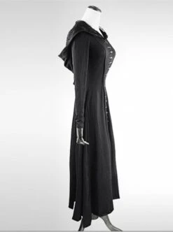 Punk Style Fishnet Hooded Vest Sexy V Neck Metal Chain Decoration High Slit Sleeveless Dress Set