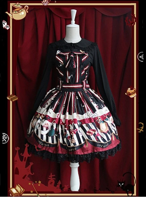 Features:Special Halloween Magic print in use, Shirring at the back, Ribbon waist tie at the back( Accessories & blouse NOT included).