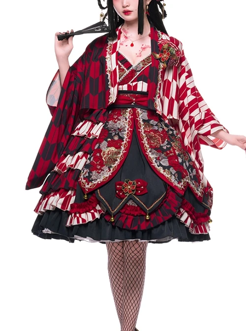 Include: JSK, Girdle, Front Waist Bowknot, Back Waist Bowknot, Brooch, Printed Inner Wear, Floral Headband, Pinwheel Clip*2, Back Hair Comb, Streamer*2