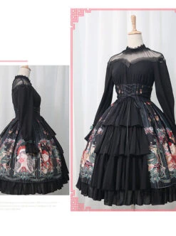 Alice Dark Forest Series OP Printing Classic Lolita Long Sleeve Dress