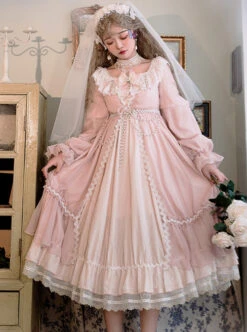 Diana Series Pink OP Elegant Palace Style Classic Lolita Long Sleeve Long Dress