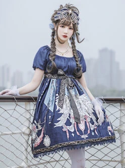 Distant Bells Series OP High Waist Classic Lolita Short Sleeve Dress