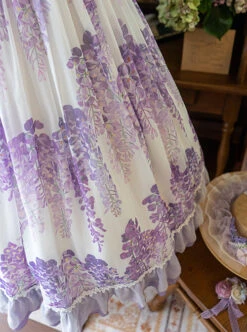 Elegant Embroidered Lace Rose Jacquard Fabric Ruffle Hem Classic Lolita Sleeveless Dress