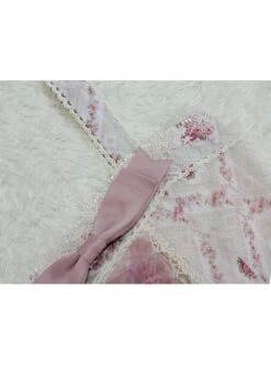 Elegant Floral Print Decoration Jacquard Lace Neckline Bow Pearl Classic Lolita Dress