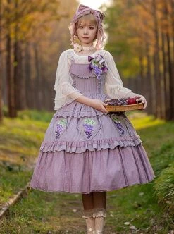 Grape Manor Series Solid Color Jacquard Grape Embroidery Elegant Classic Lolita Sleeveless Dress