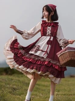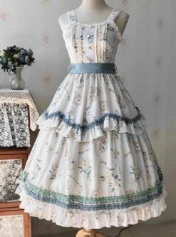 Konggu Changfeng Series Pastoral Style Floral Print Belt Embroidery Classic Lolita Sleeveless Dress