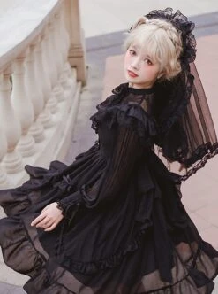 Lace Petal Hem Classic Lolita Small High Collar Short Sleeve Dress