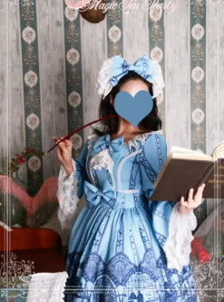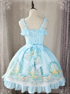 Magic Tea Party Veronica Series Light Blue Elegance Printing Classic Lolita Sling Dress