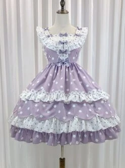 Purple Polka Dot Bow Lace Ruffle Cake Dress Classic Lolita Sleeveless Dress
