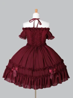 Black Chiffon Binding Strap Off-the-shoulder Classic Lolita Dress