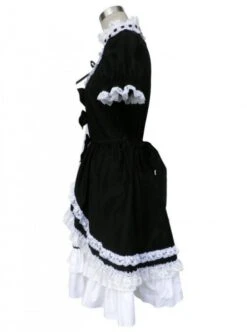 Black And White Cotton Elegant Gothic Lolita Short Sleeves Dress