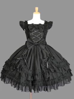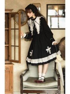 Cross Temple Series OP Pure Color Cotton Halloween Simplicity Gothic Lolita Black Long Sleeve Dress