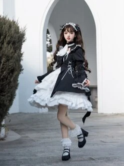 Court Style Retro Fishbone Breast Support Three-Dimensional Jacquard Long Sleeve Gothic Lolita Dress