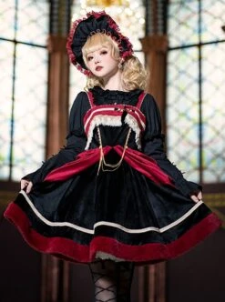 K Series Baroque Red Velvet Classical Detachable Chain Gemini Gothic Lolita Sleeveless Dress