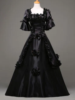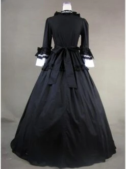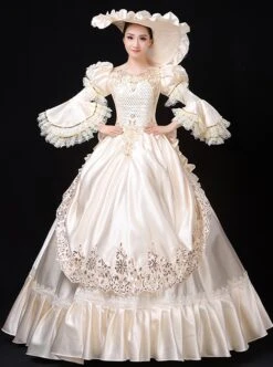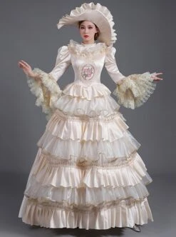 Beige Long Satin Delicate Lace Noble Elegant Royal Aristocratic Retro Court Prom Long Sleeve Dress