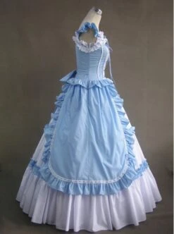 Blue Puff Sleeve Light Champagne Hem Lace Embroidery Classical Court Party Lolita Prom Dress