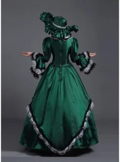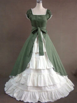 Green & White Puff Sleeve Open Front Splitting Multi-layer Cotton Satin Classic Lolita Dress