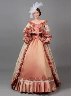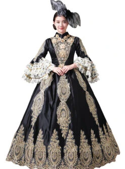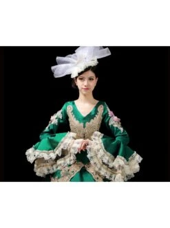 Light Golden High Waist Embroidery Long Sleeve Big Hem Dance Chorus Performance Prom Lolita Dress
