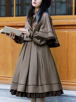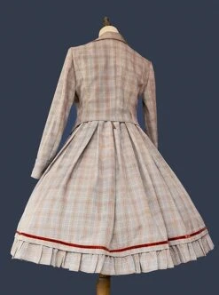 College Style Lapel Blazer Generous Collar Ruffle Hem Sleeveless Dress School Lolita Dress Coat Set