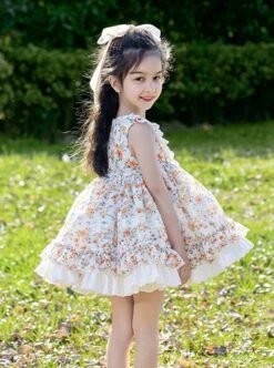 Autumn Winter Small Floral Ribbon Band Fluffy Ruffle Lace Sweet Lolita Kids Sleeveless Dress