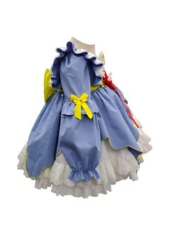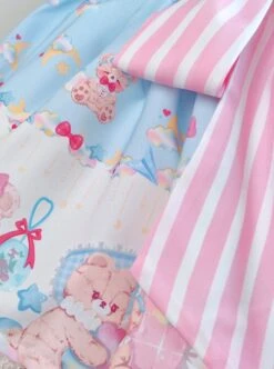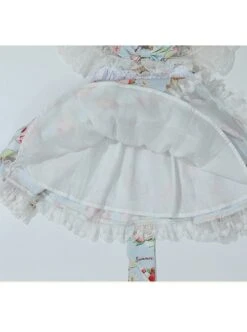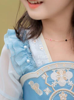 Antique Pearl Lace Thin Short Sleeve Light Blue Tassel Pendant Sweet Lolita Kid Sling Dress Set