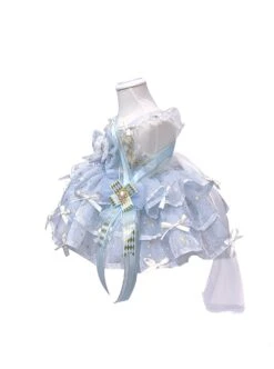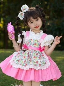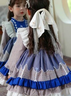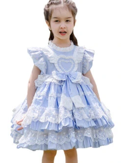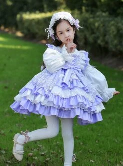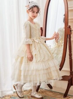 Lace Round Neck Cute Stitching Lantern Sleeve Multi-Layer Hem Sweet Lolita Kids Long-Sleeved Dress