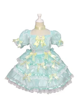 Palace Style Lace Magic Color Asymmetrical Hem Design Sweet Lolita Kids Long-Sleeved Dress