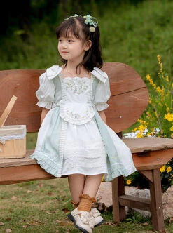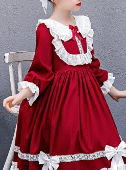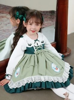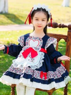 Floral Love Bowknot Apron Decoration Autumn Winter Dark Color Classic Lolita Kids Long-Sleeved Dress