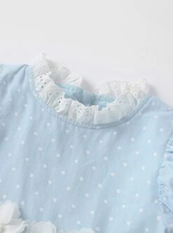 Flower Cute Puff Sleeve Lace Double Layer Hem Polka Dot Short Sleeve Classic Lolita Kids Dress