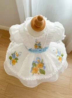 Gardenia Series White Simple Print Summer Cute Puff Sleeve Sweet Lolita Kids Short Sleeve Dress