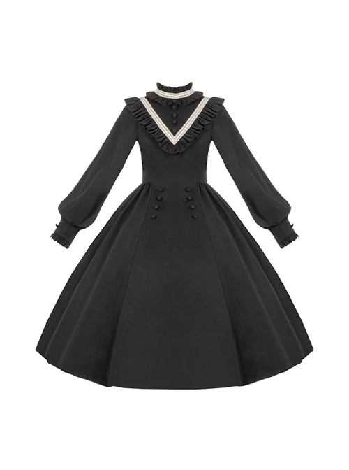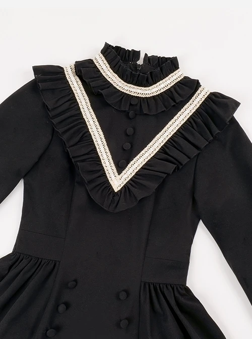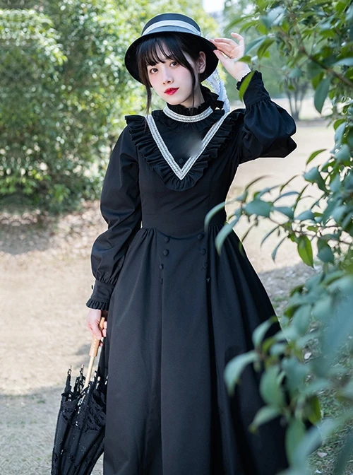 A slim little black dress with a simple and elegant silhouette, mainly black with a few white embellishments. The elegant earrings on the chest of the dress are paired with V-shaped white lace to modify the shoulder lines. The skirt is simple and neat, and the waist is slim.