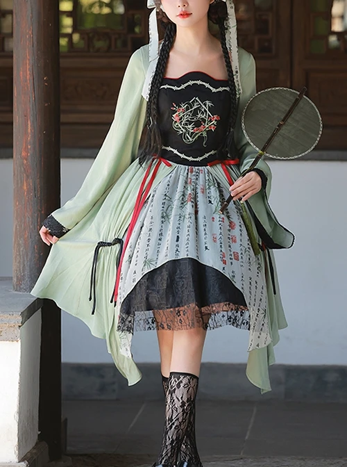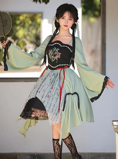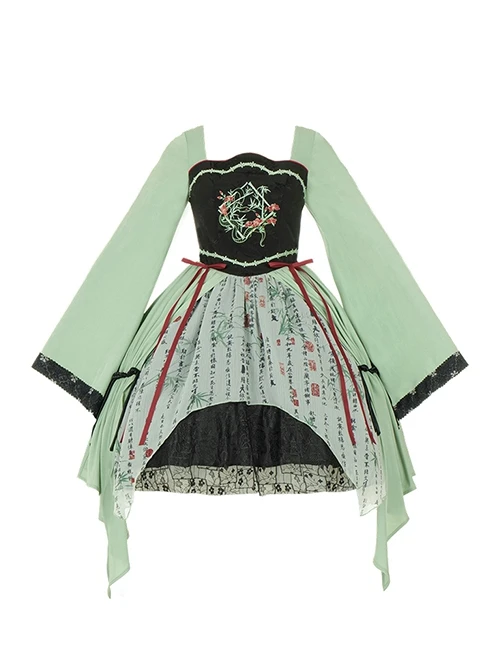 The light green color scheme expresses the waterscape, and the black lace expresses the mountains, reflecting the beauty and natural interest of the Jiangnan water town.