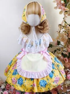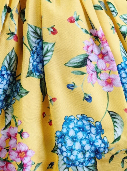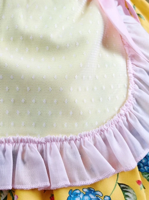 Embellished with yellow florals, matched with hollow lace, it is versatile and Western style.