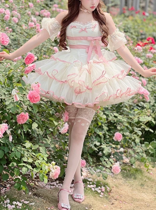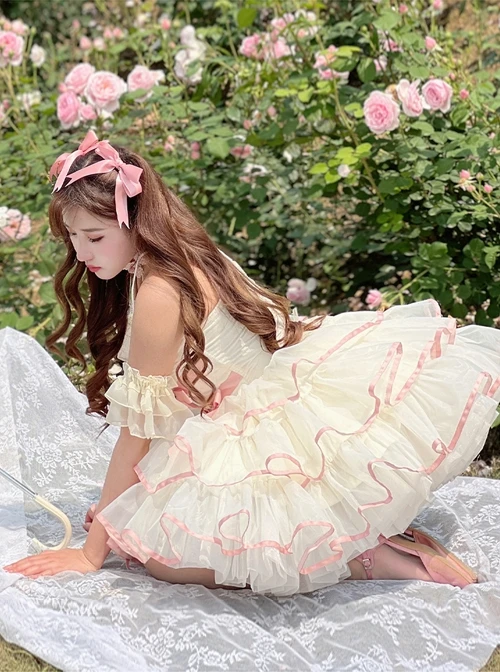 Daily simple pink bowknot decorated ballet style sleeveless dress.
