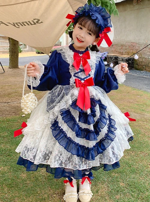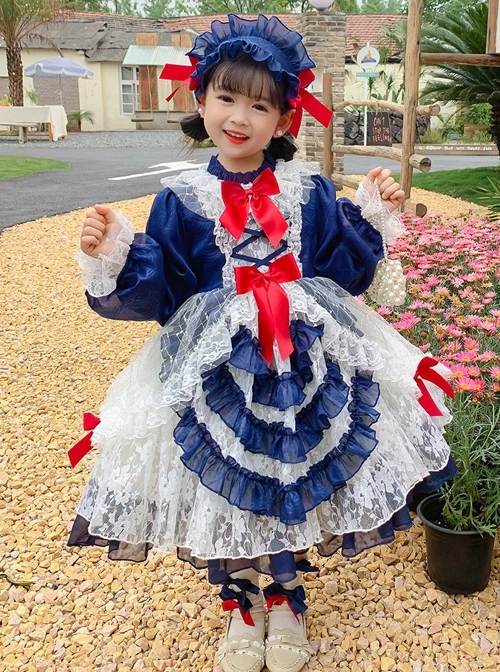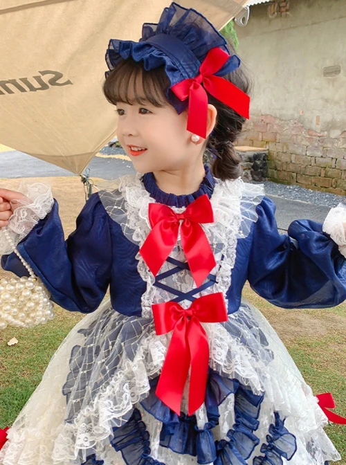 Cute bowknot decoration, delicate lace hem, long-sleeve dress