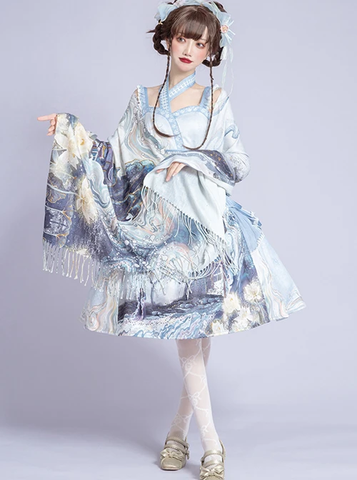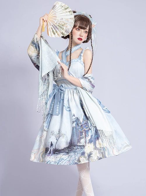 Include: Dress + Fake Collar + Bowknot + Hand Sleeve + Scarf