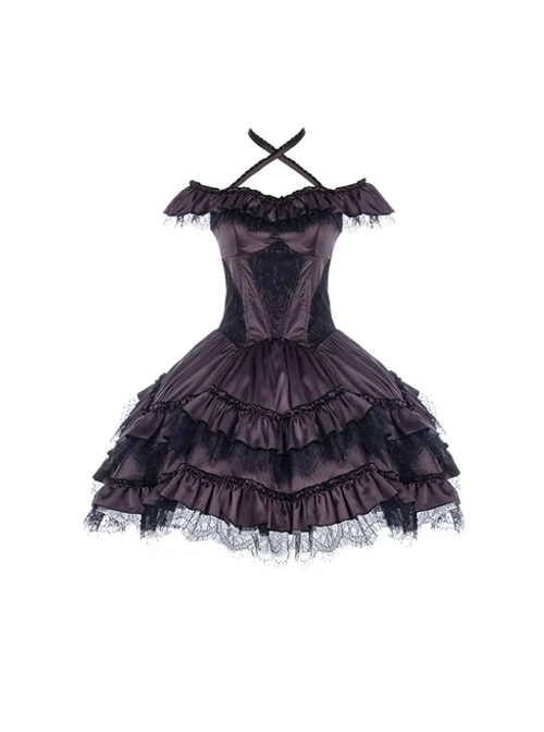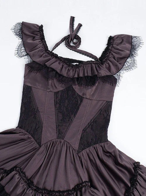 Lace stitching halter neck design, slim fit, petal lace hem design, mysterious and elegant.