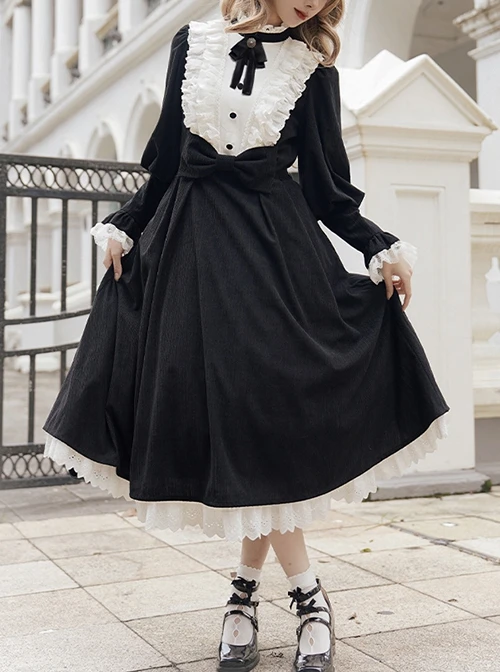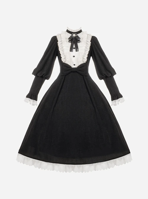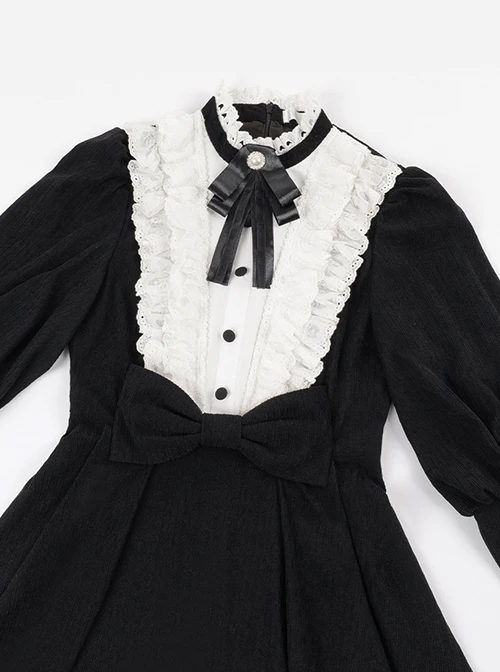 The small high collar with fungus edge is very elegant with the collar flower. The four layers of white lace on the chest show classic romance. There is an irremovable bow at the waist. The sleeves are leg-of-mutton sleeves, the large skirt is fluffy and gorgeous, and the zipper is at the back.