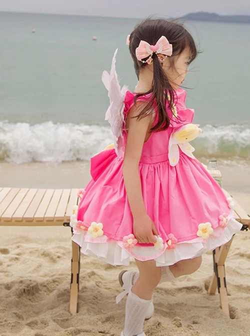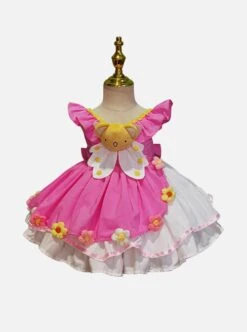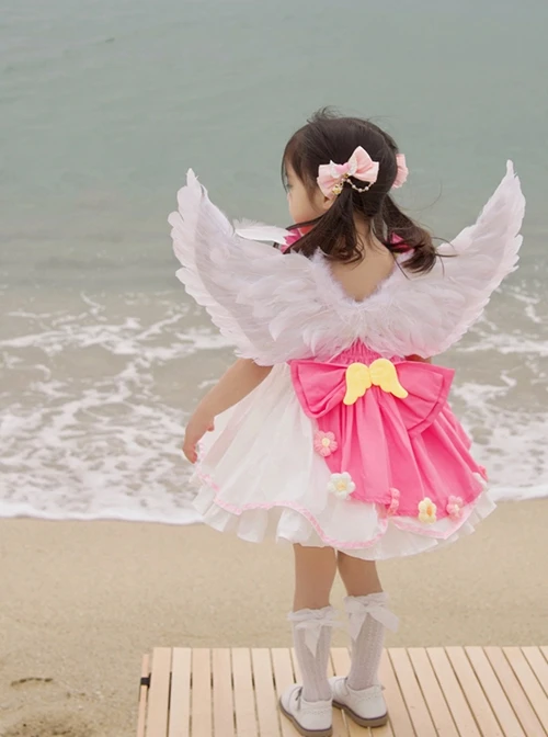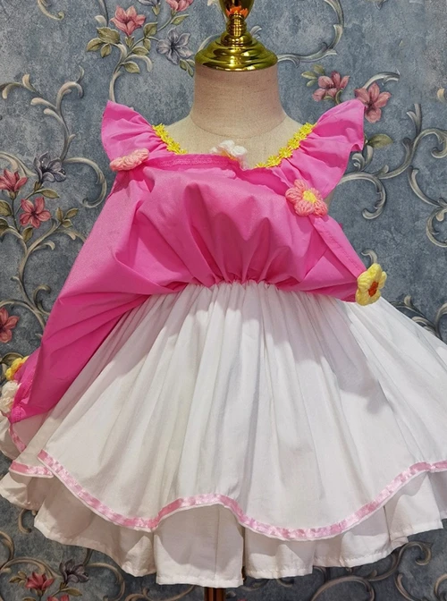 Cardcaptor Sakura Cosplay, with a detachable small chest, three-dimensional knitted flowers, pink and white sleeveless dress