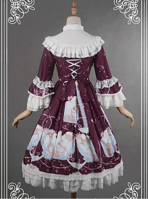 Features: Flounce hemline, lace up, bowknot decorated at waistline, detachable lace cuff.